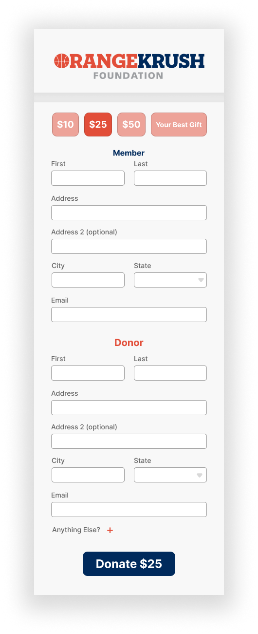 Because most donations are made through mobile, I decided on a mobile-first approach on the member page, with efficiency and user confidence taking priority. Due to time and resource constraints, we were scoped to a web browser-based approach that respects internet best practices.
